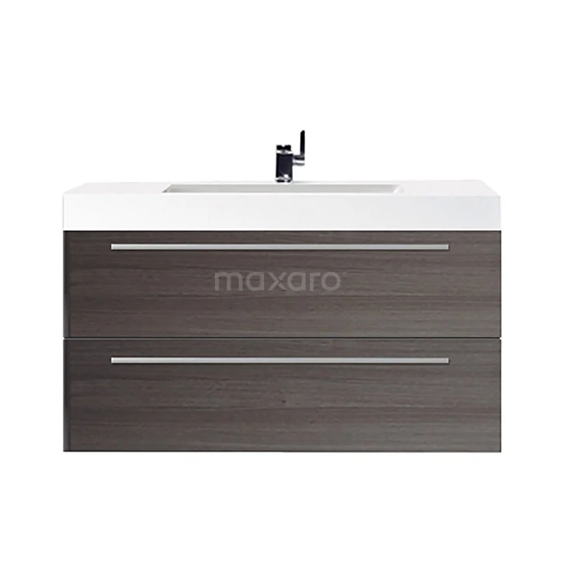 Canto Waschtische | 100 cm Dunkelbraune Esche front Mineralguss 2 übereinanderliegende Schubladen
