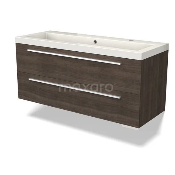 Canto Waschtische | 120 cm Dunkelbraune Esche front Mineralguss 2 übereinanderliegende Schubladen