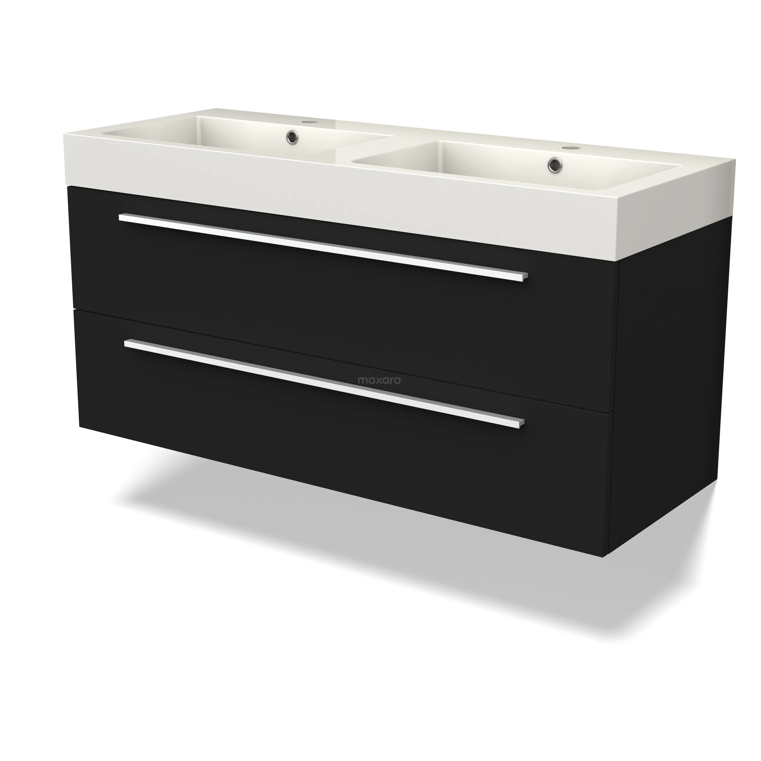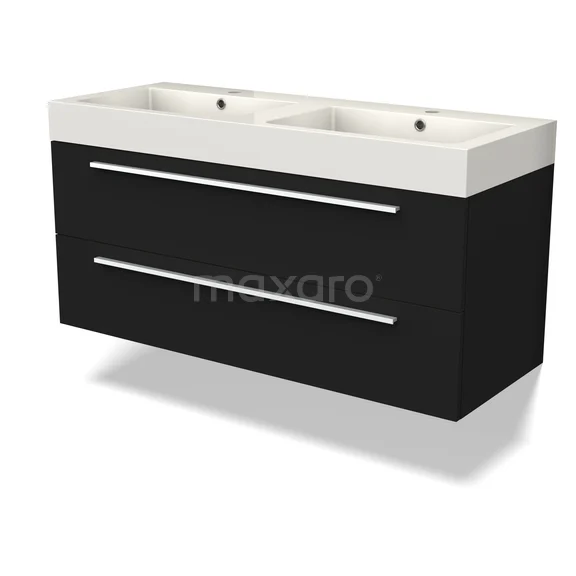 Canto Waschtische | 120 cm Schwarz front Mineralguss 2 übereinanderliegende Schubladen