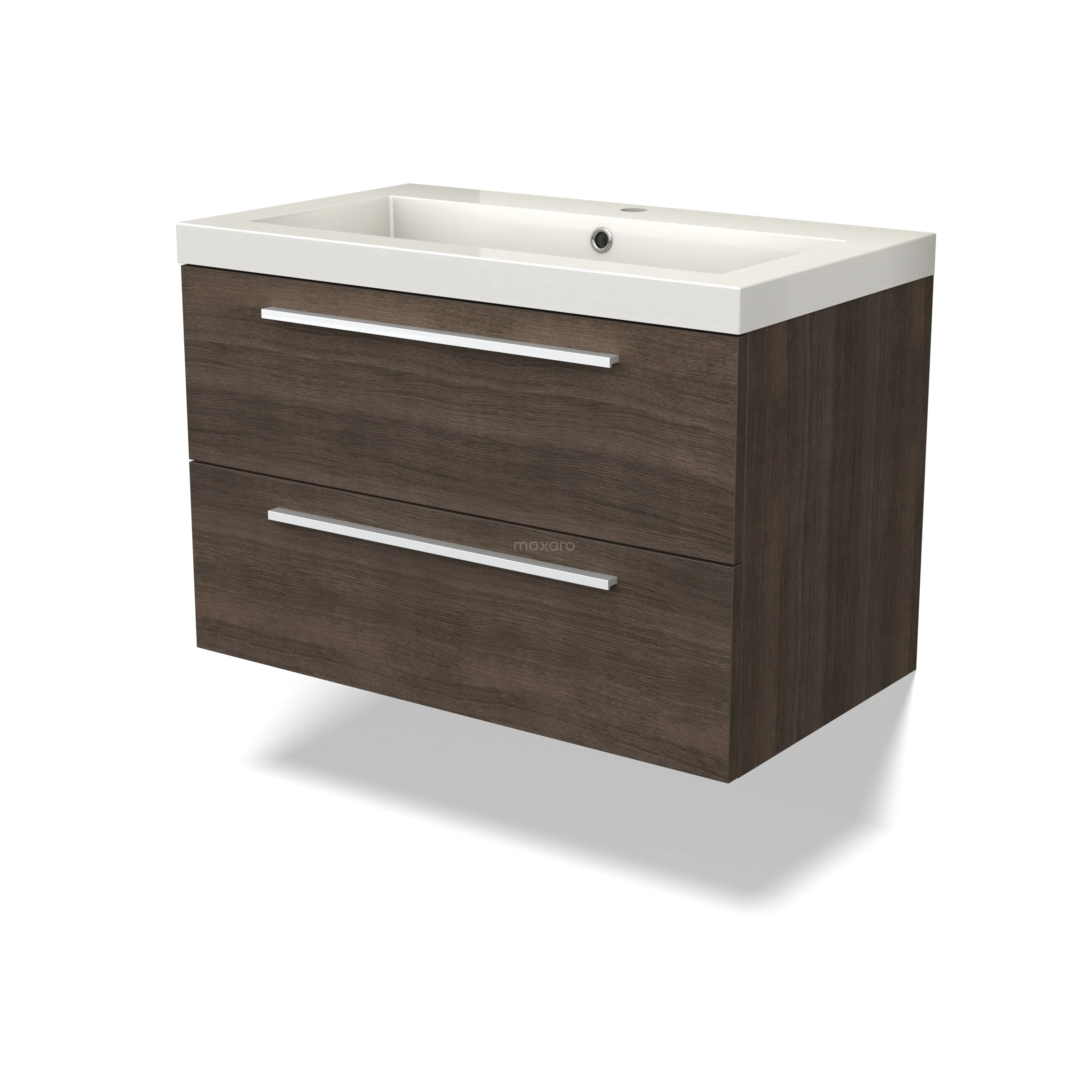 Canto Waschtische | 80 cm Dunkelbraune Esche front Mineralguss 2 übereinanderliegende Schubladen