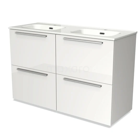 Hochglanz-Badmöbel 120cm Modulo Hochglanz Weiß 4 hohe Schubladen Flaches Waschbecken aus Keramik