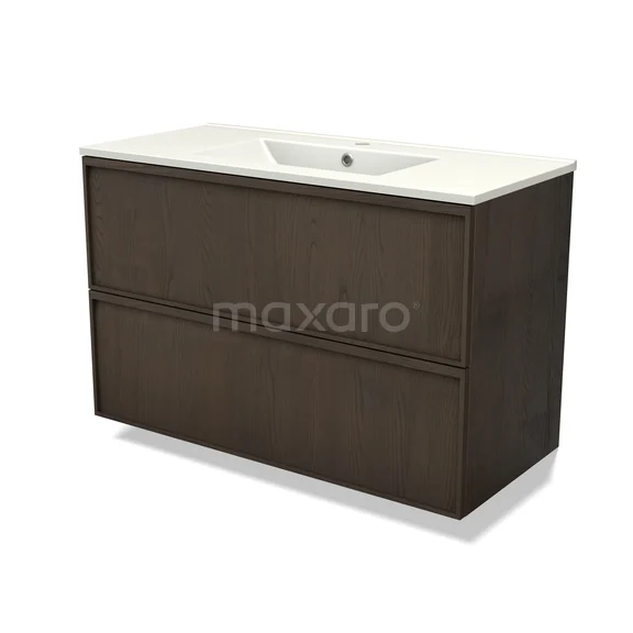 Modulo Plus Waschtische | 100 cm Espresso Eiche Liste front Keramik 2 übereinanderliegende Schubladen