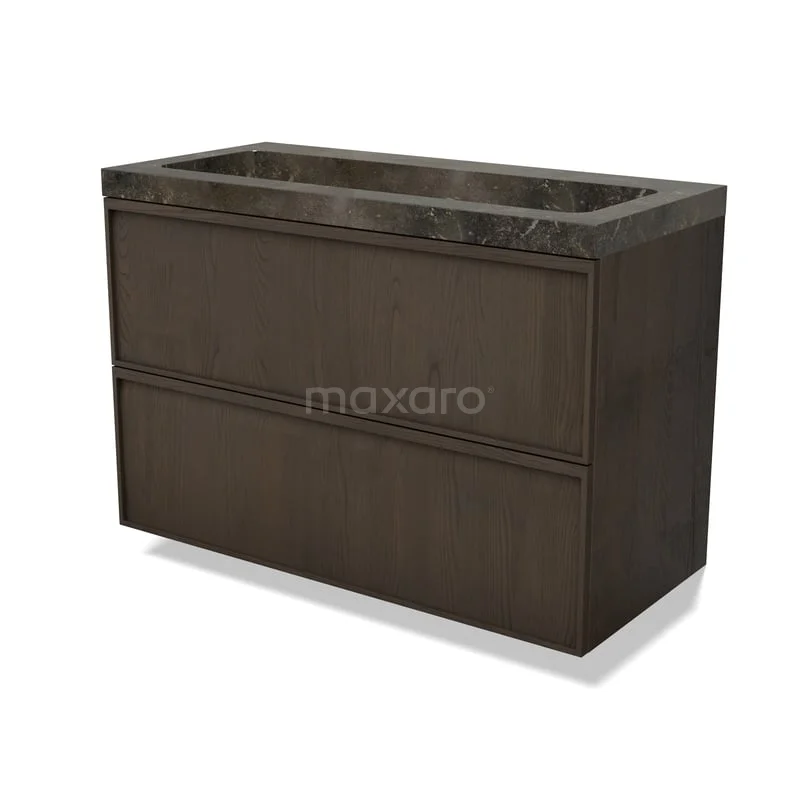 Modulo Plus Waschtische | 100 cm Espresso Eiche Liste front Naturstein 2 übereinanderliegende Schubladen