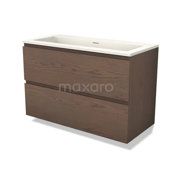 Modulo Plus Waschtische | 100 cm Kakao-Eiche Grifflos front Solid Surface 2 übereinanderliegende Schubladen