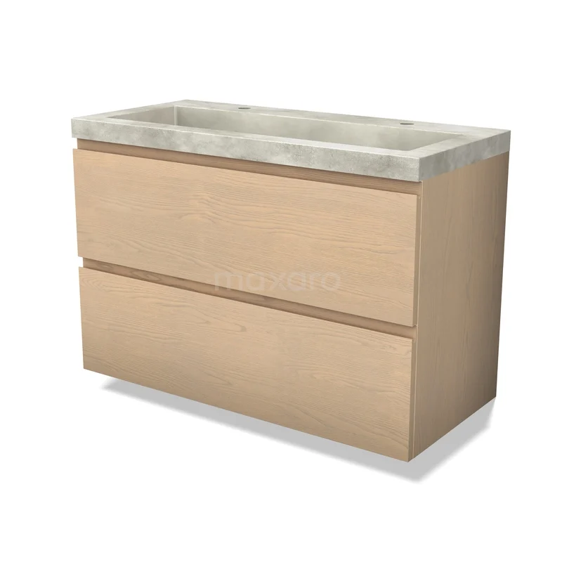 Modulo Plus Waschtische | 100 cm Natürliche Eiche Grifflos front Beton 2 übereinanderliegende Schubladen