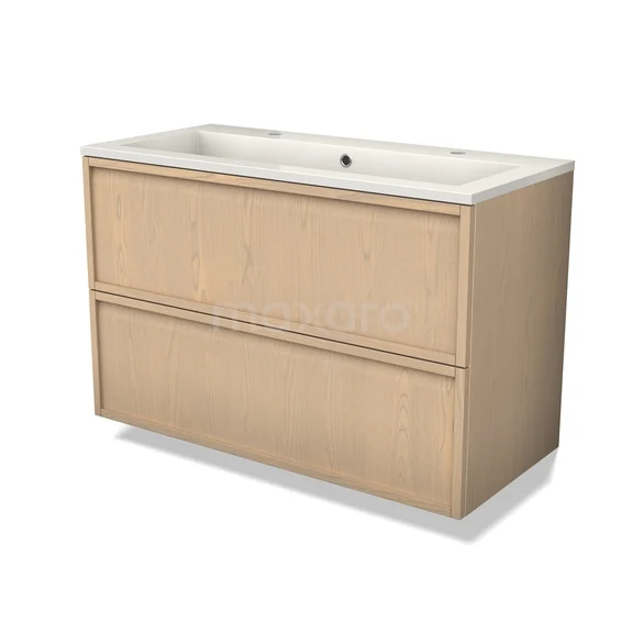 Modulo Plus Waschtische | 100 cm Natürliche Eiche Rahmen front Mineralguss 2 übereinanderliegende Schubladen