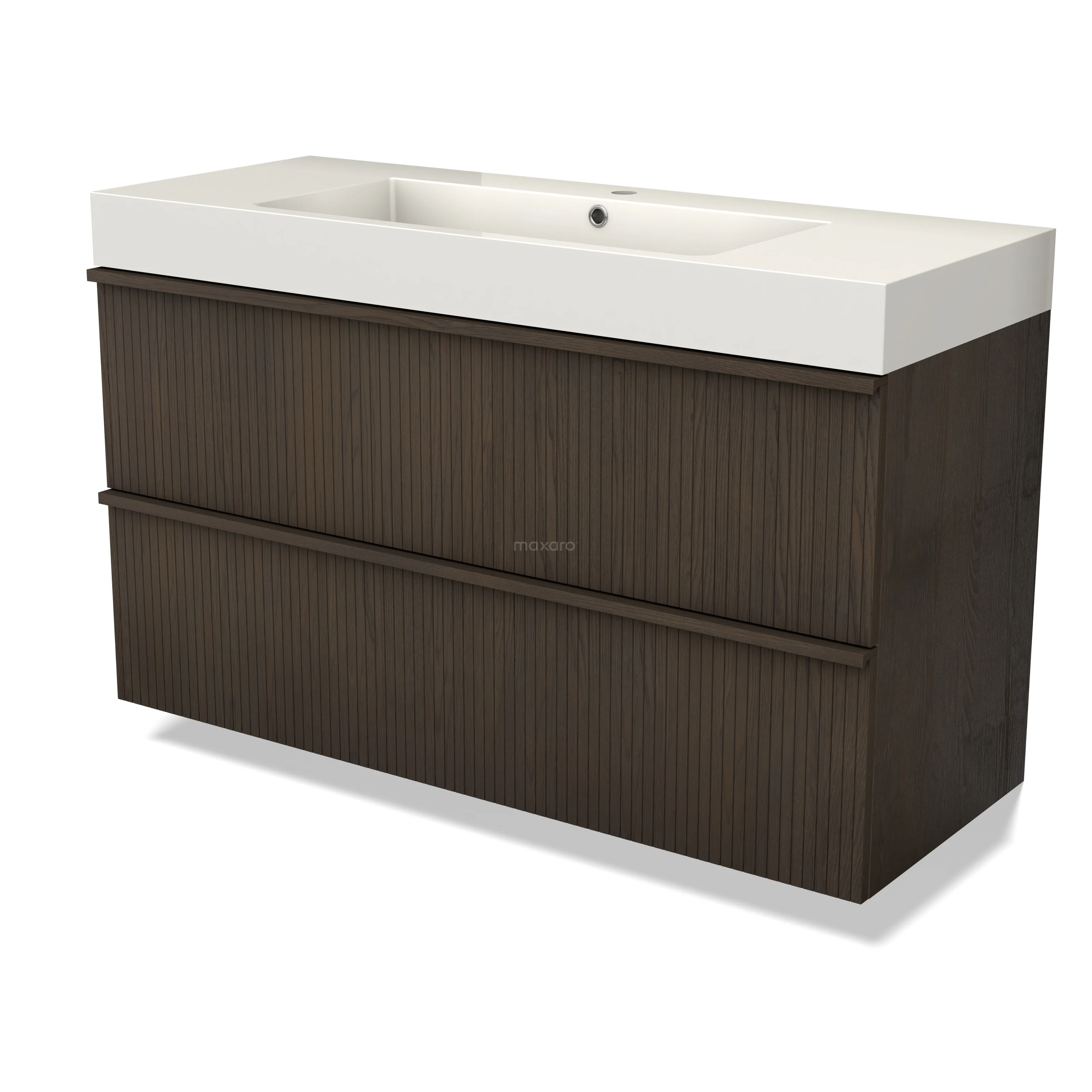 Modulo Plus Waschtische | 120 cm Espresso Eiche Riffel front Mineralguss 2 übereinanderliegende Schubladen