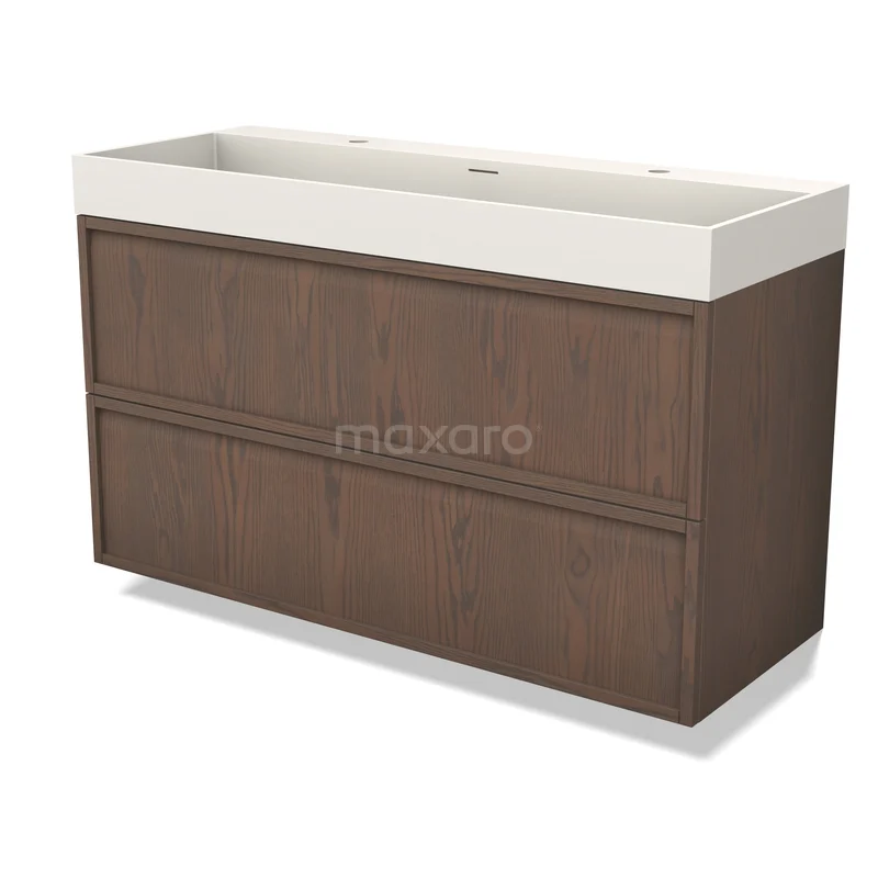 Modulo Plus Waschtische | 120 cm Kakao-Eiche Rahmen front Solid Surface 2 übereinanderliegende Schubladen