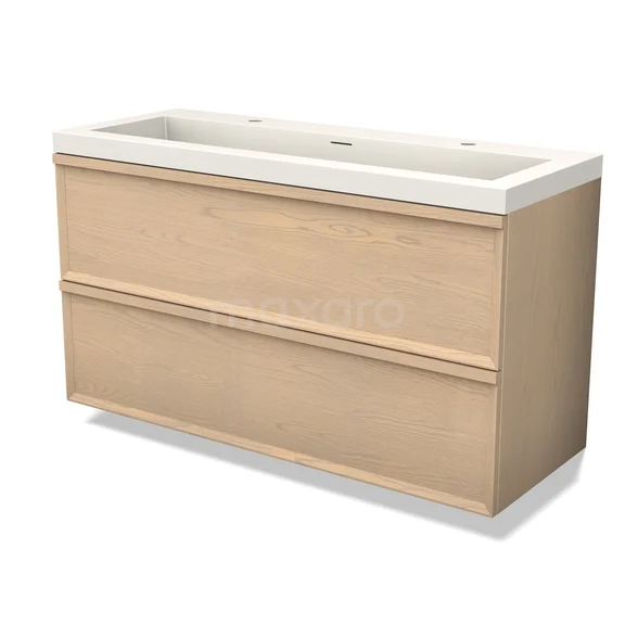Modulo Plus Waschtische | 120 cm Natürliche Eiche Gesichtspunkt front Solid Surface 2 übereinanderliegende Schubladen