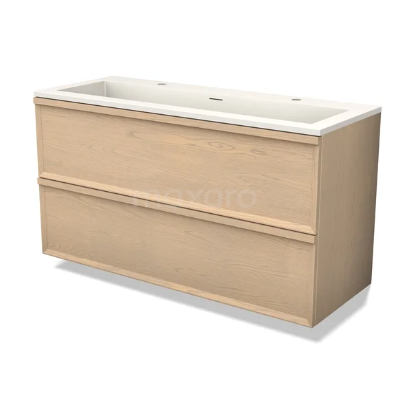 Modulo Plus Waschtische | 120 cm Natürliche Eiche Gesichtspunkt front Solid Surface 2 übereinanderliegende Schubladen