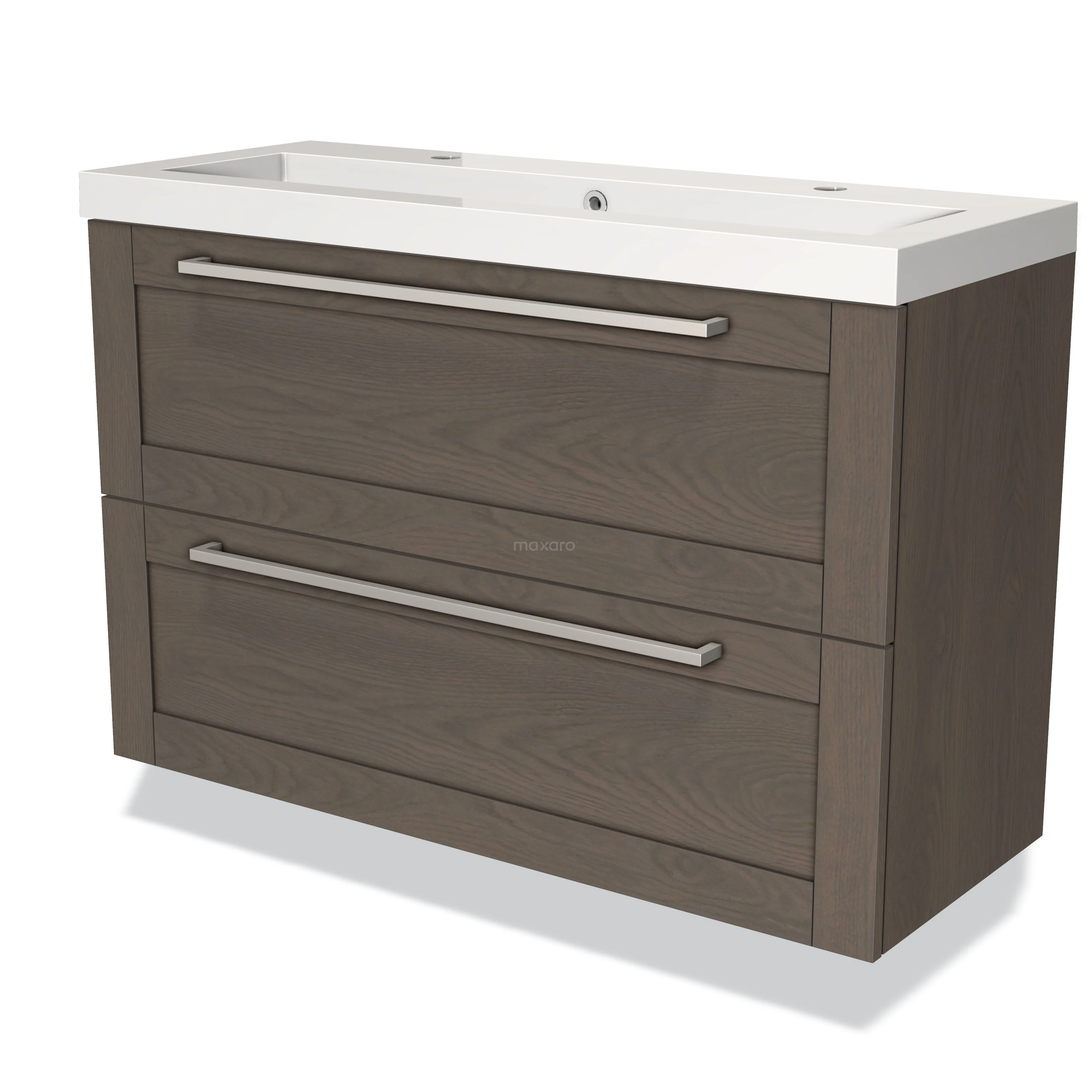 Modulo Slim Waschtische | 100 cm Dunkelbraune Eiche Rahmen front Mineralguss 2 übereinanderliegende Schubladen