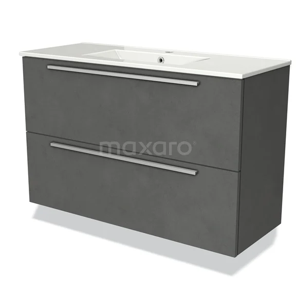 Modulo Slim Waschtische | 100 cm Dunkelgrauer Beton Flach front Keramik 2 übereinanderliegende Schubladen