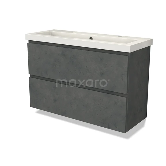Modulo Slim Waschtische | 100 cm Dunkelgrauer Beton Grifflos front Mineralguss 2 übereinanderliegende Schubladen