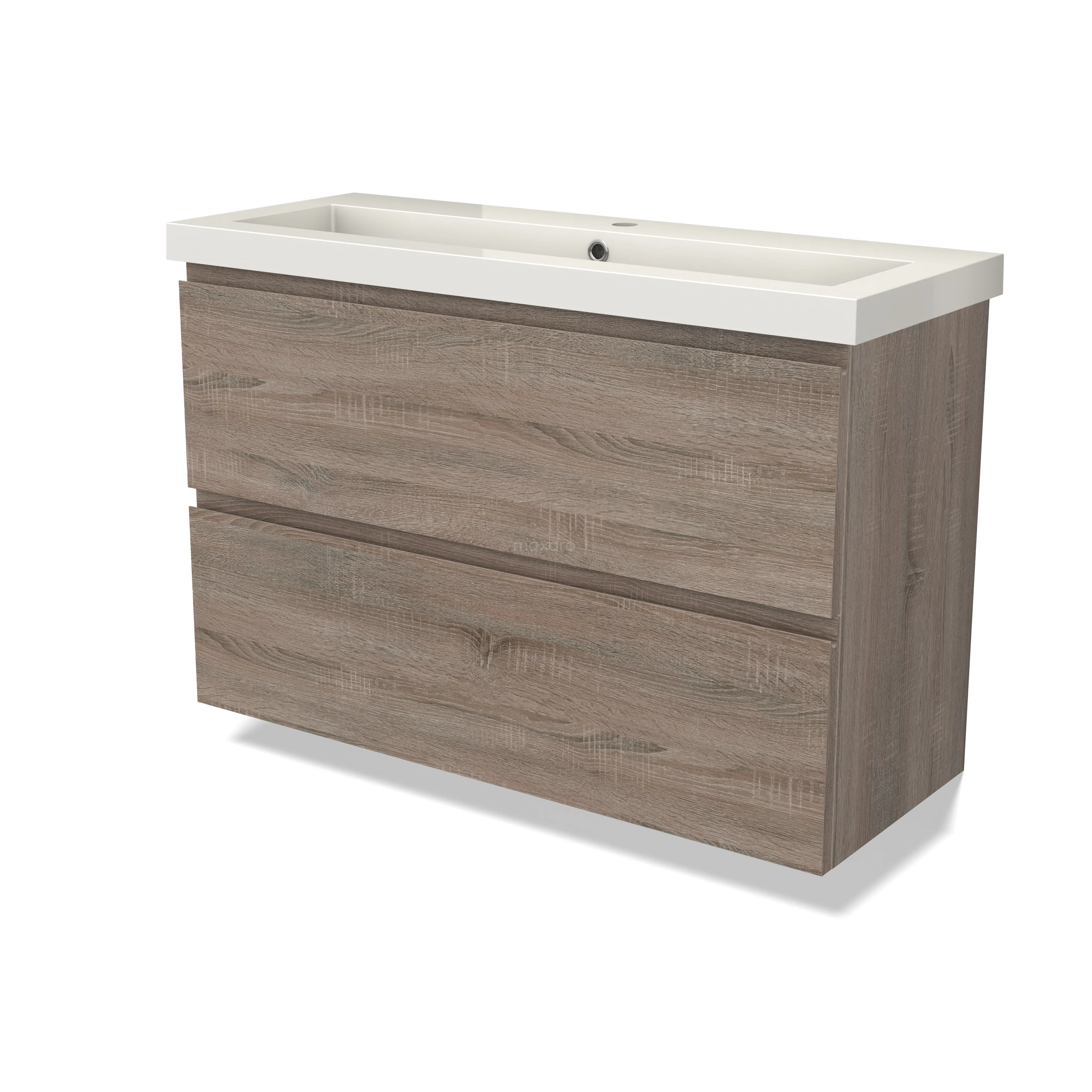 Modulo Slim Waschtische | 100 cm Eiche Grifflos front Mineralguss 2 übereinanderliegende Schubladen
