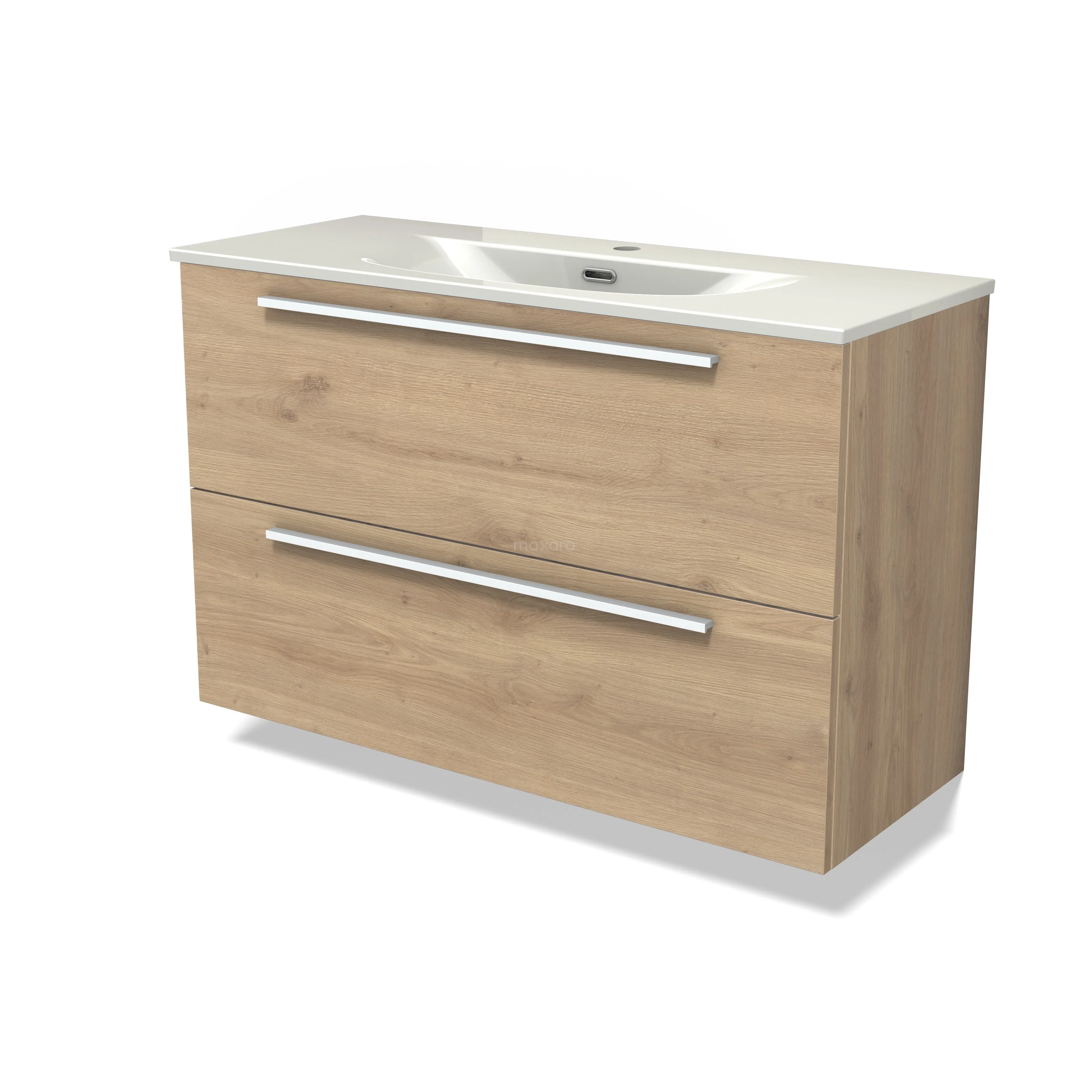Modulo Slim Waschtische | 100 cm Hellbraune Eiche Flach front Keramik 2 übereinanderliegende Schubladen
