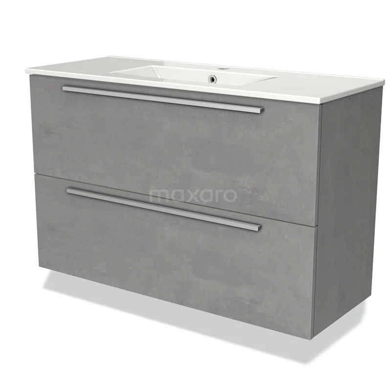 Modulo Slim Waschtische | 100 cm Hellgrauer Beton Flach front Keramik 2 übereinanderliegende Schubladen