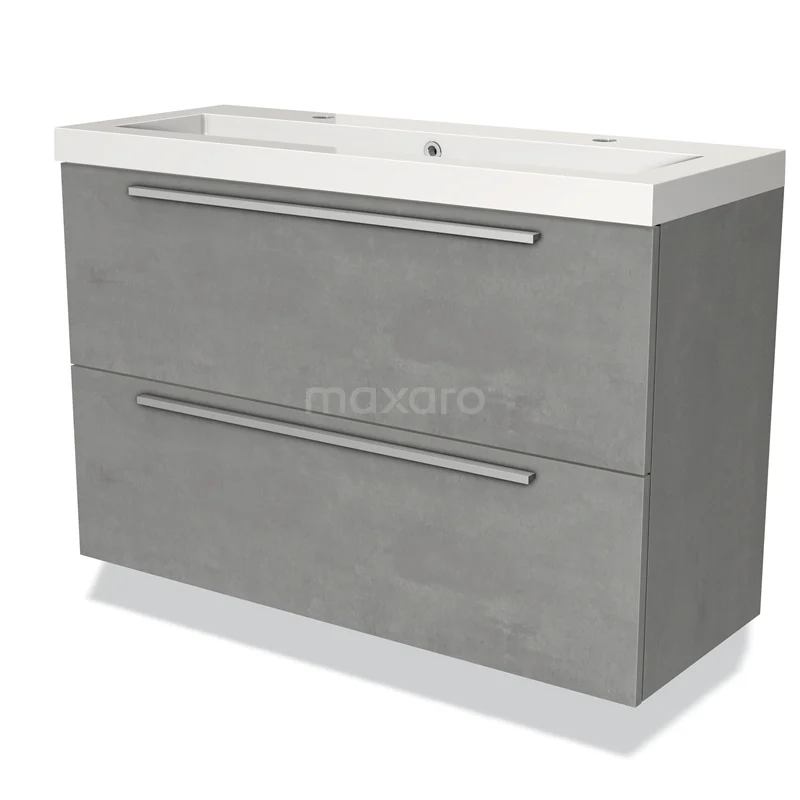 Modulo Slim Waschtische | 100 cm Hellgrauer Beton Flach front Mineralguss 2 übereinanderliegende Schubladen