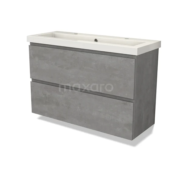 Modulo Slim Waschtische | 100 cm Hellgrauer Beton Grifflos front Mineralguss 2 übereinanderliegende Schubladen