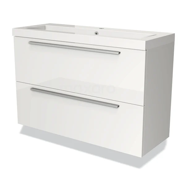 Modulo Slim Waschtische | 100 cm Hochglanz Weiß Flach front Mineralguss 2 übereinanderliegende Schubladen