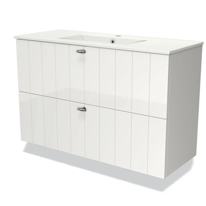 Modulo Slim Waschtische | 100 cm Hochglanz Weiß Lamelle front Keramik 2 übereinanderliegende Schubladen