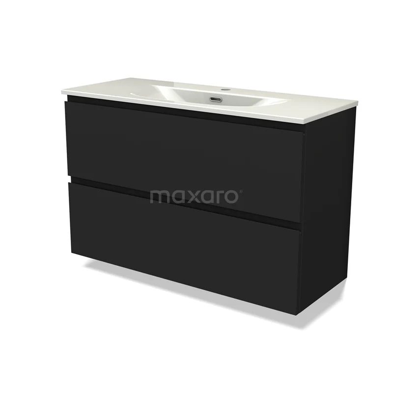 Modulo Slim Waschtische | 100 cm Matt Schwarz Grifflos front Keramik 2 übereinanderliegende Schubladen