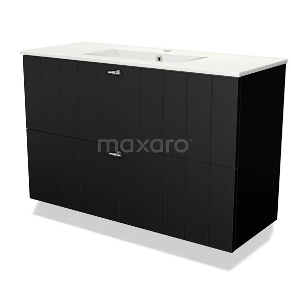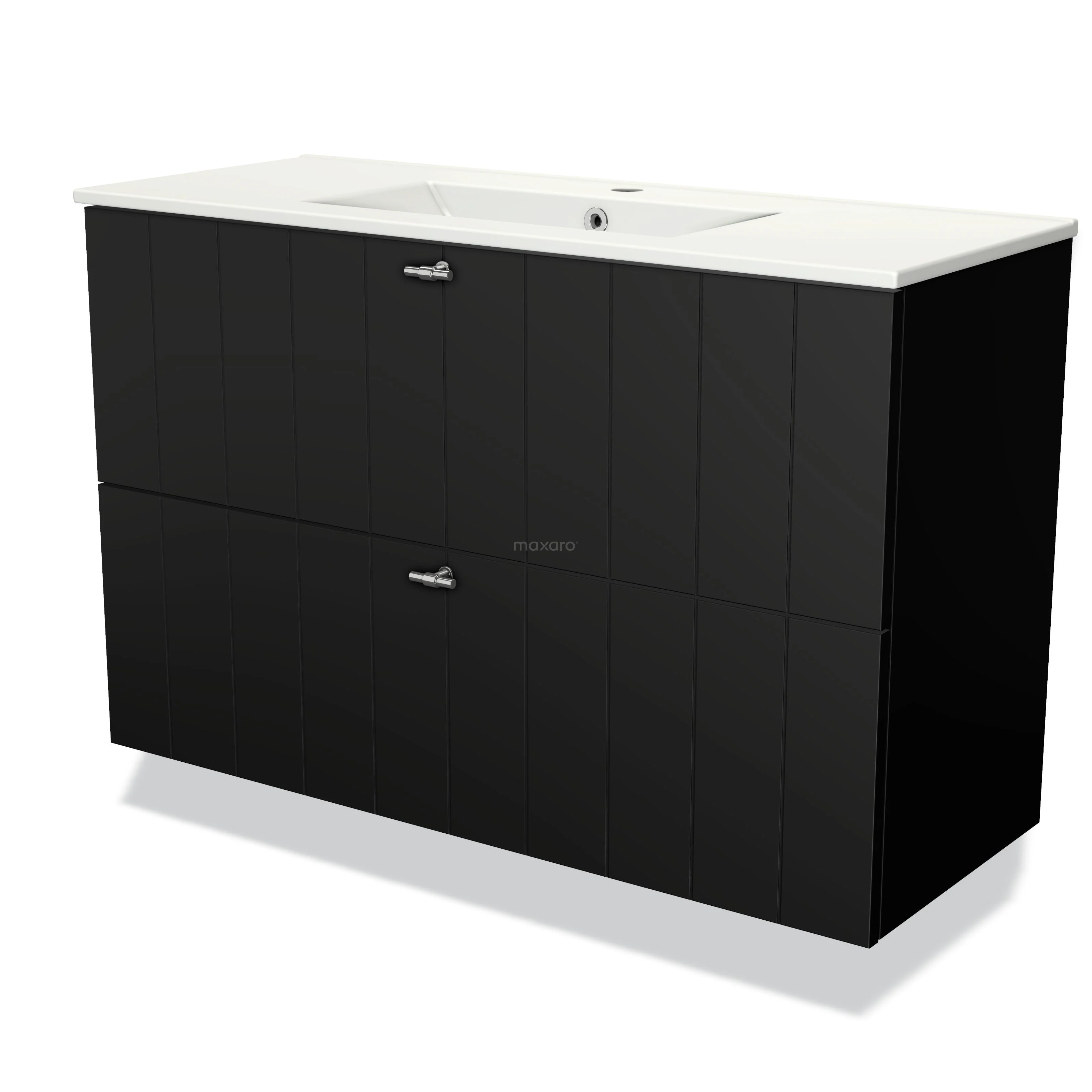 Modulo Slim Waschtische | 100 cm Matt Schwarz Lamelle front Keramik 2 übereinanderliegende Schubladen