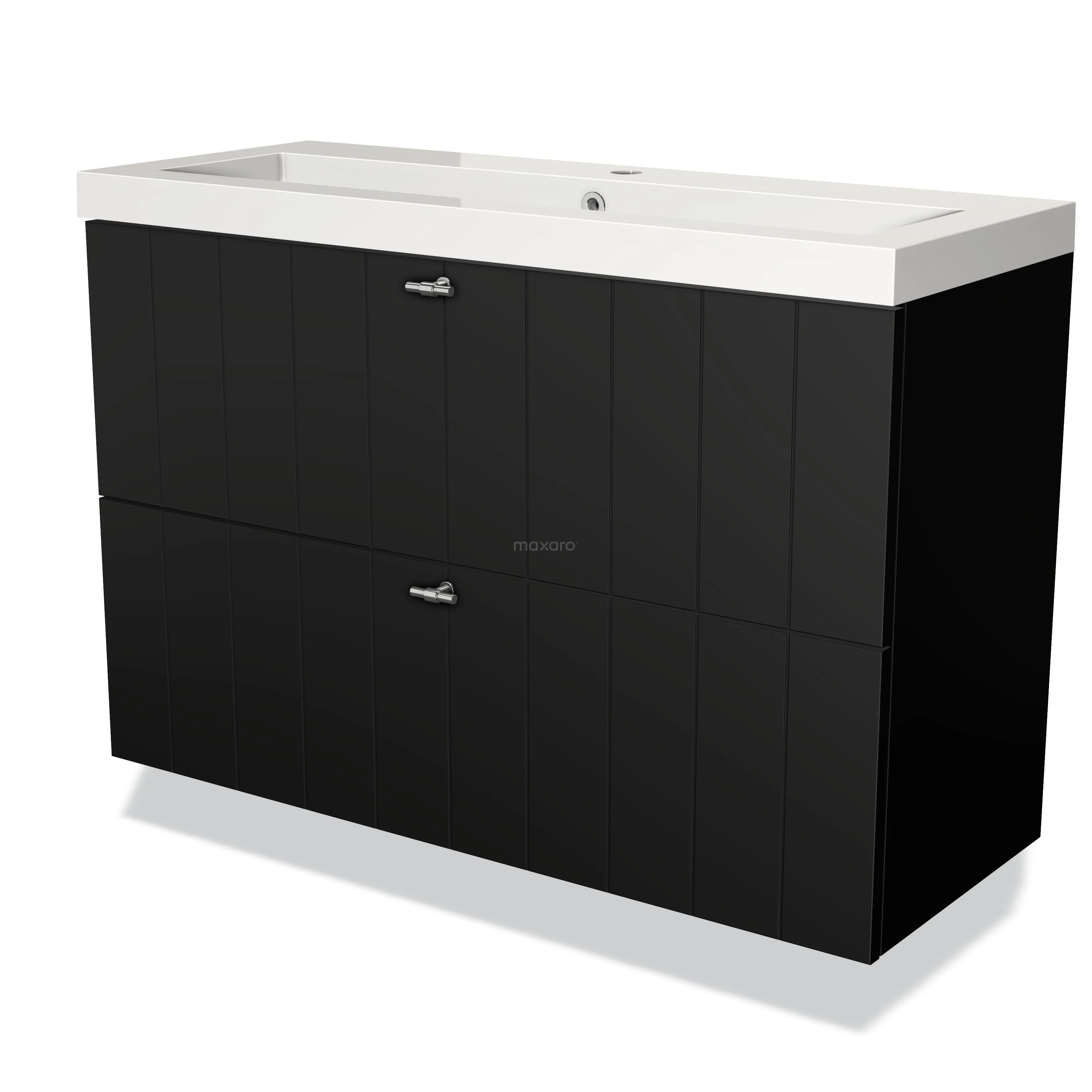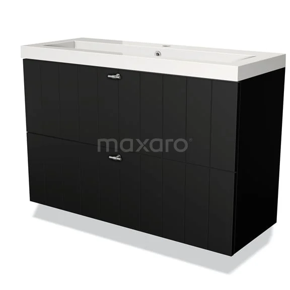 Modulo Slim Waschtische | 100 cm Matt Schwarz Lamelle front Mineralguss 2 übereinanderliegende Schubladen