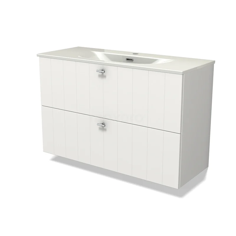 Modulo Slim Waschtische | 100 cm Matt Weiß Lamelle front Keramik 2 übereinanderliegende Schubladen
