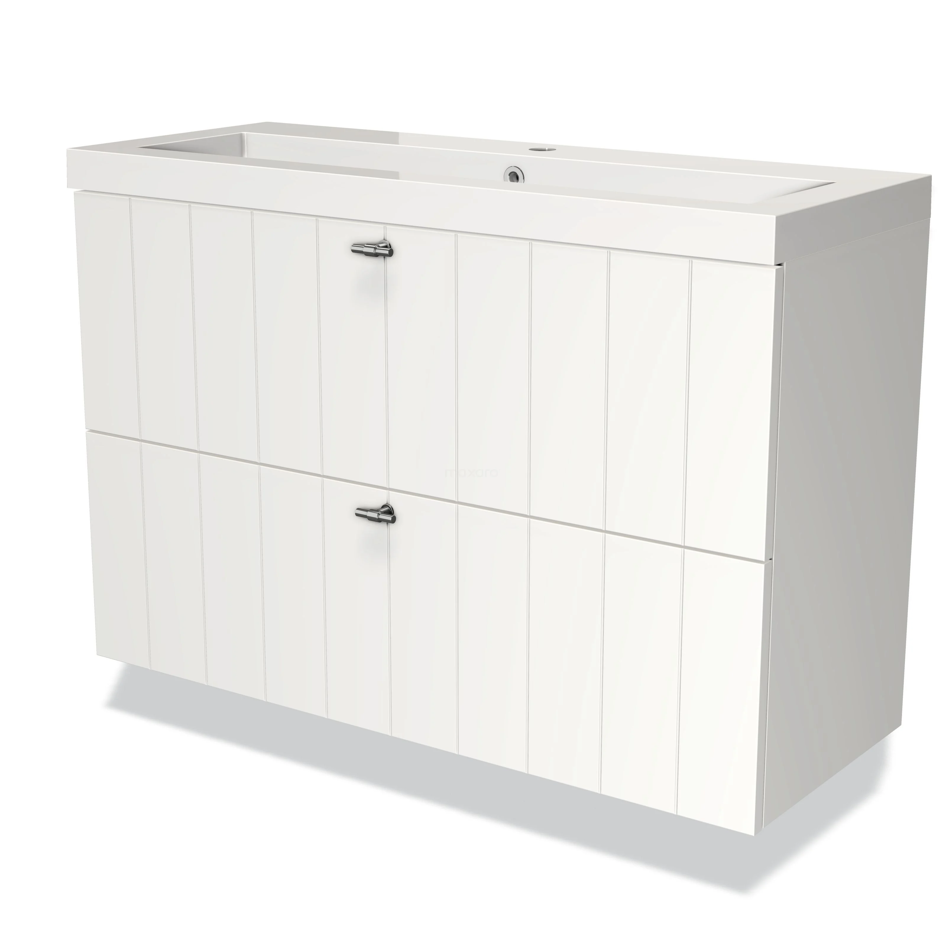 Modulo Slim Waschtische | 100 cm Matt Weiß Lamelle front Mineralguss 2 übereinanderliegende Schubladen