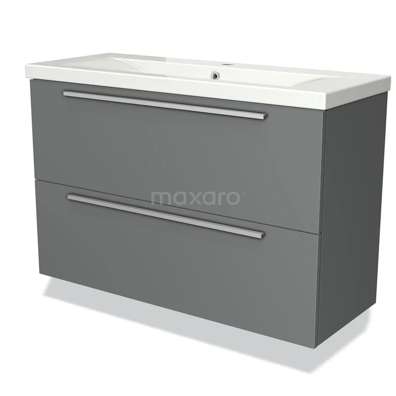 Modulo Slim Waschtische | 100 cm Mittelgrau Flach front Keramik 2 übereinanderliegende Schubladen
