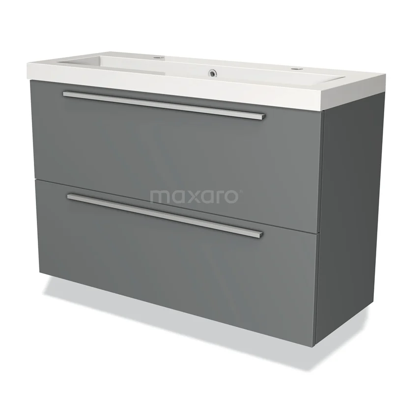 Modulo Slim Waschtische | 100 cm Mittelgrau Flach front Mineralguss 2 übereinanderliegende Schubladen