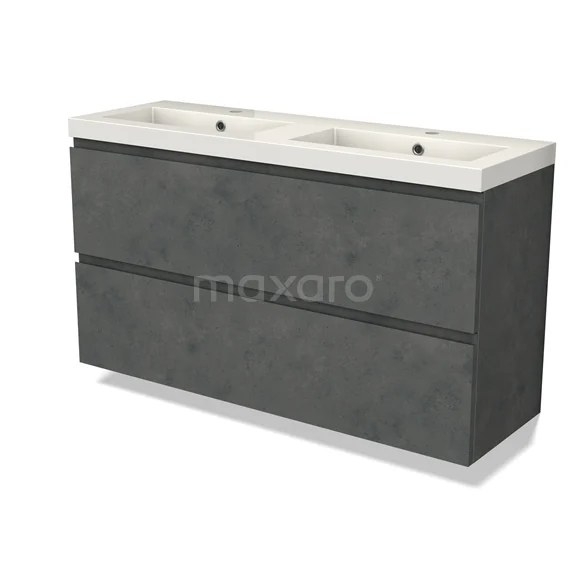 Modulo Slim Waschtische | 120 cm Dunkelgrauer Beton Grifflos front Mineralguss 2 übereinanderliegende Schubladen