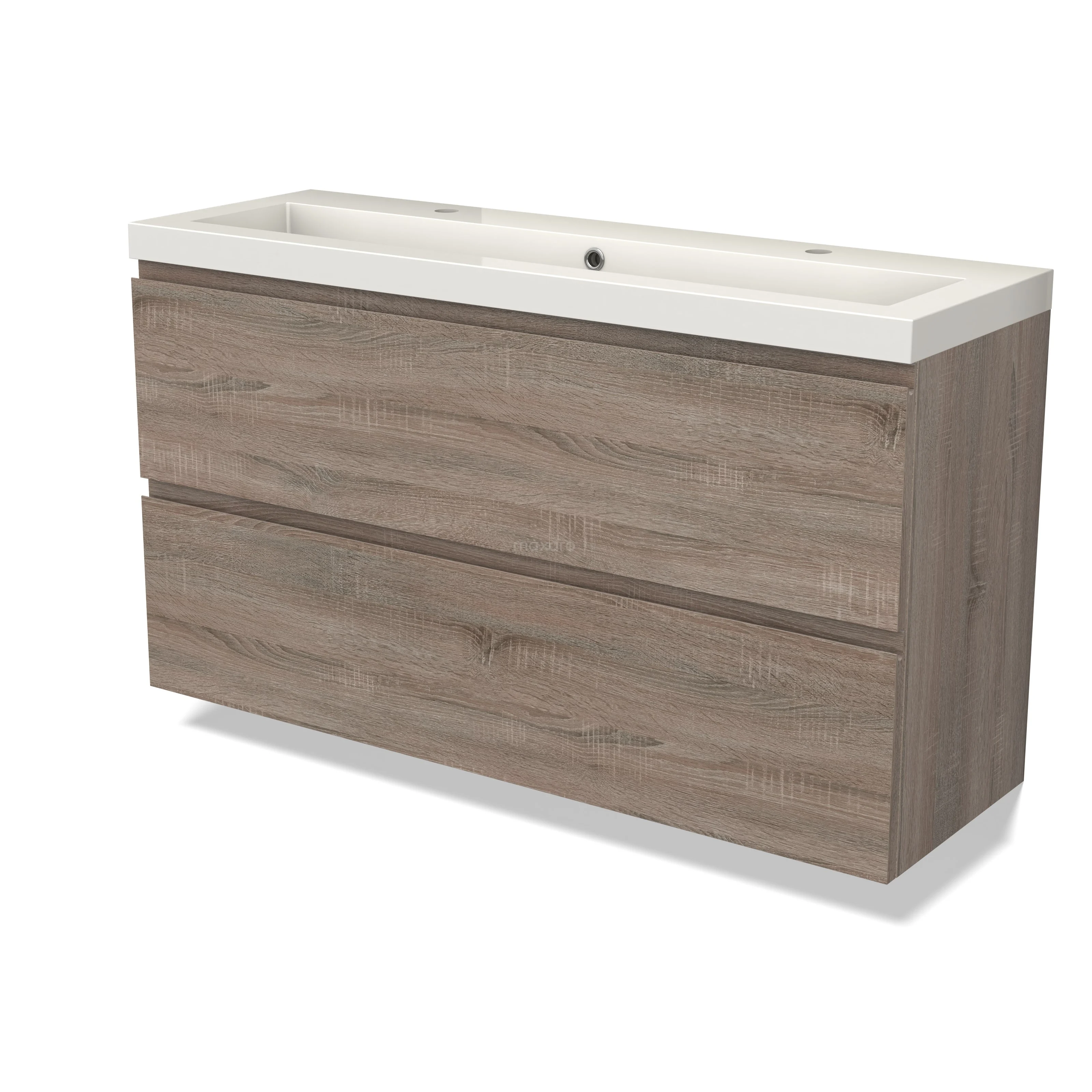 Modulo Slim Waschtische | 120 cm Eiche Grifflos front Mineralguss 2 übereinanderliegende Schubladen