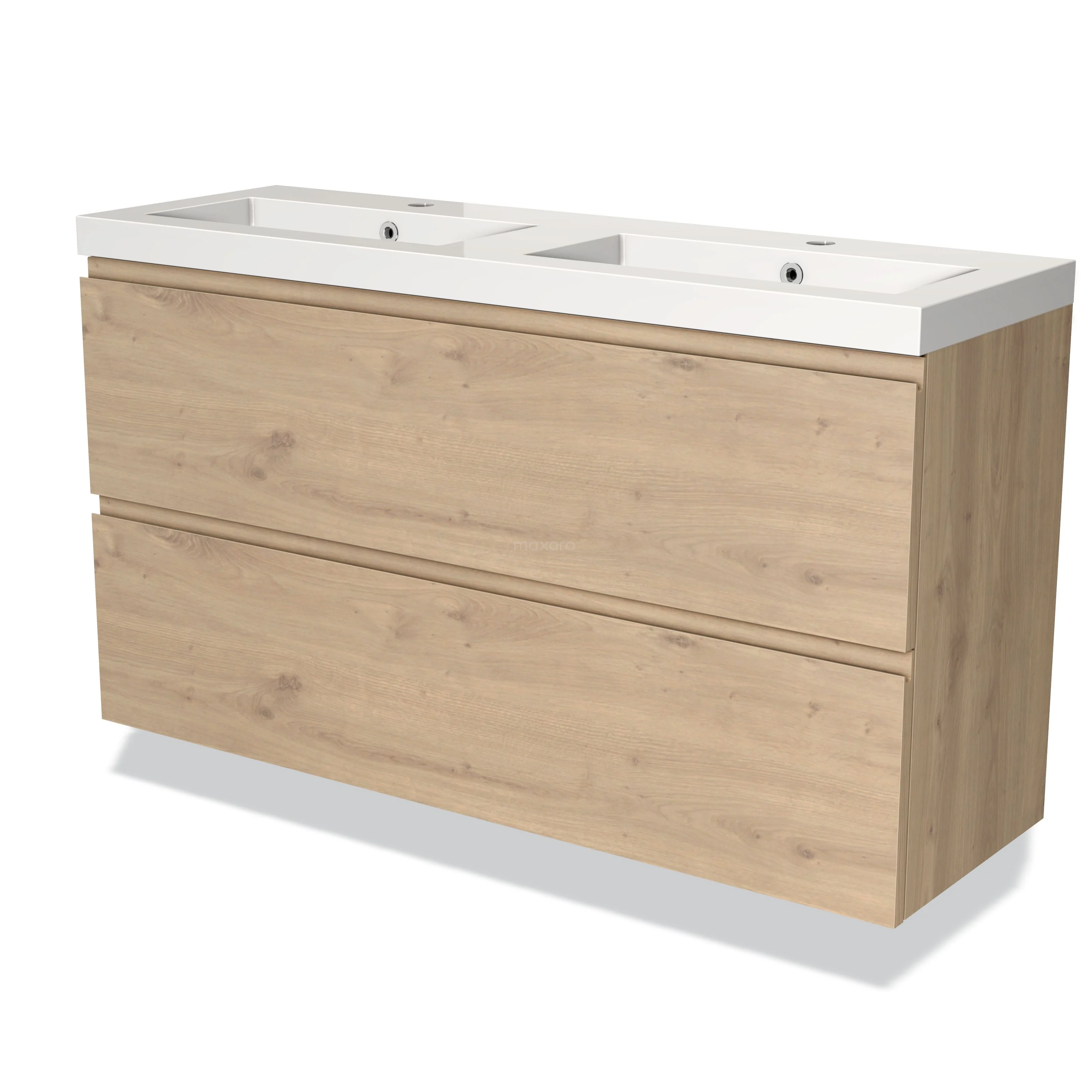 Modulo Slim Waschtische | 120 cm Hellbraune Eiche Grifflos front Mineralguss 2 übereinanderliegende Schubladen