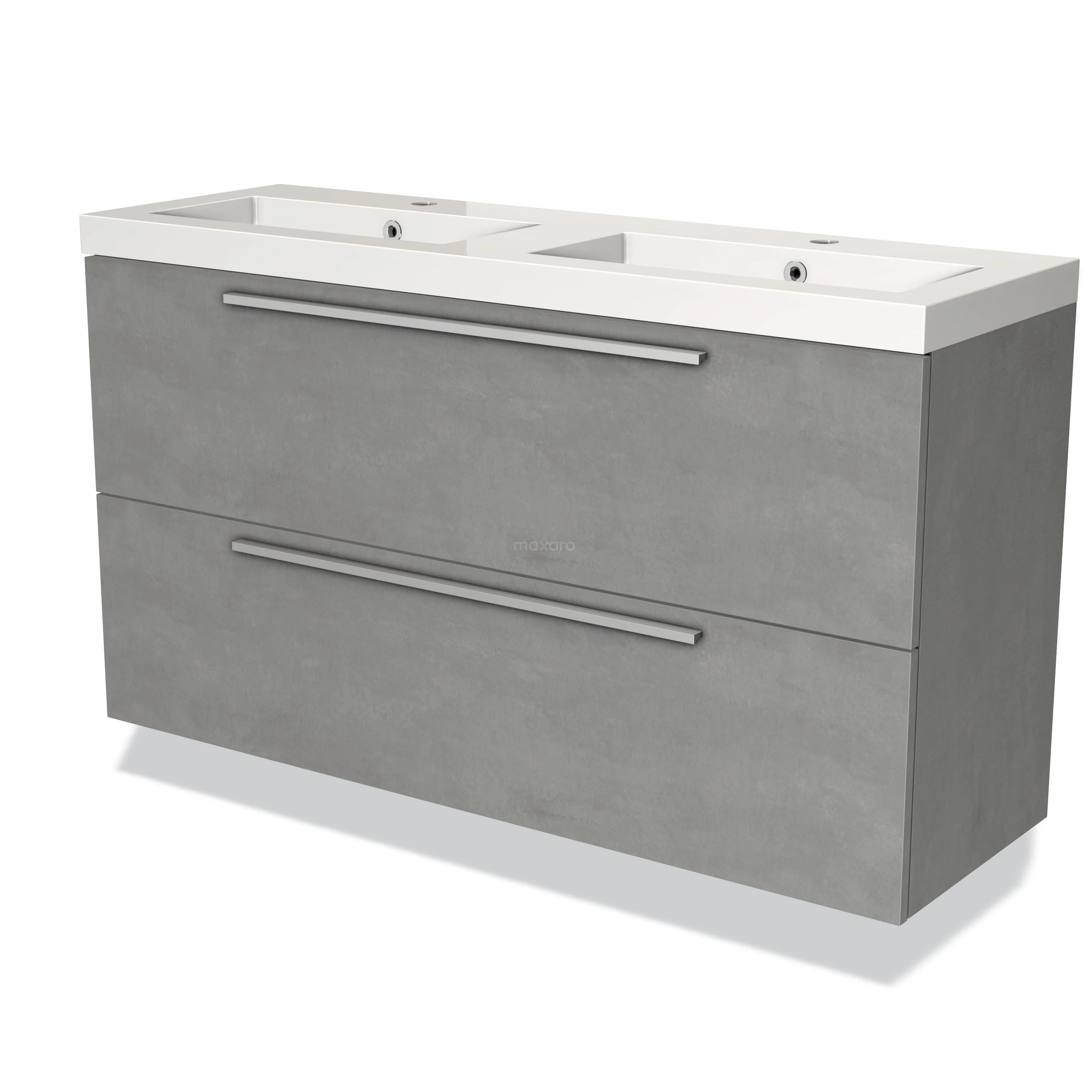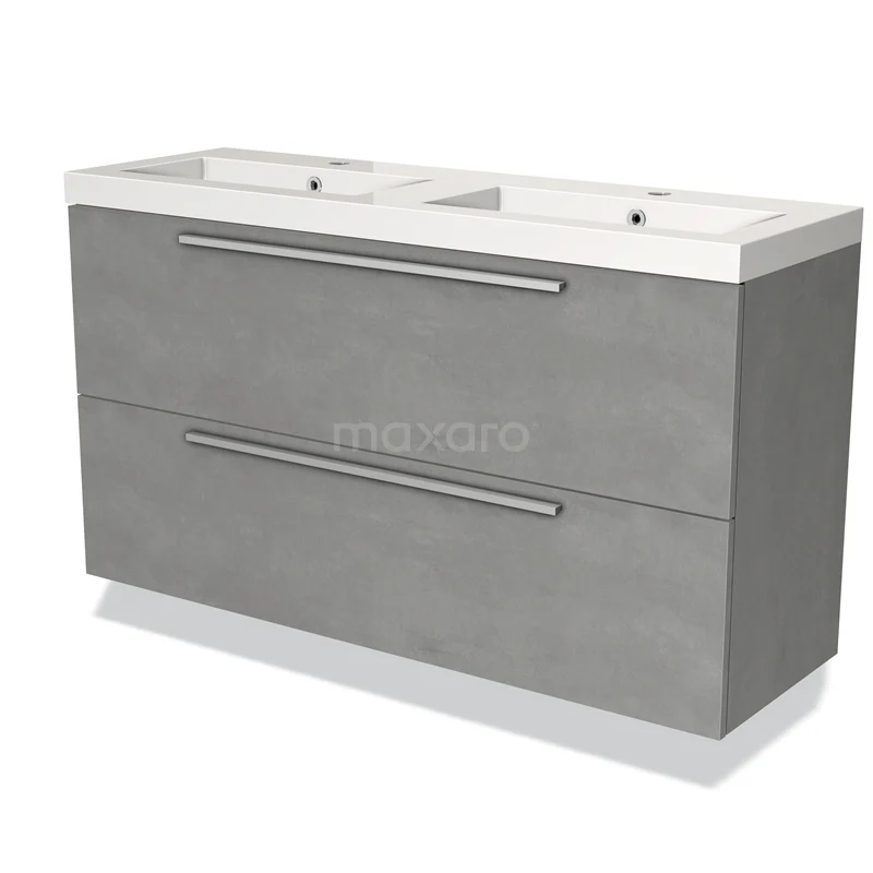 Modulo Slim Waschtische | 120 cm Hellgrauer Beton Flach front Mineralguss 2 übereinanderliegende Schubladen