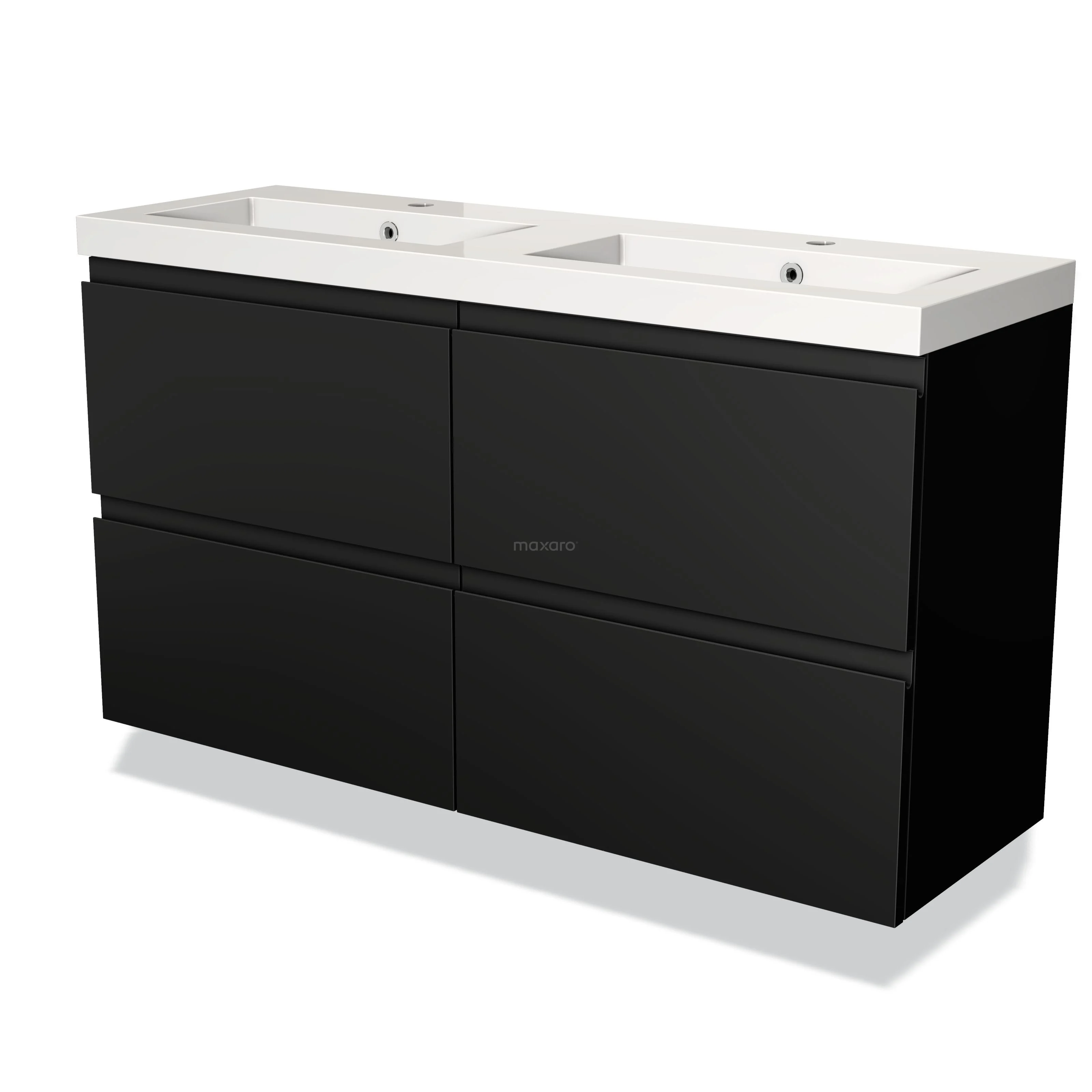 Modulo Slim Waschtische | 120 cm Matt Schwarz Grifflos front Mineralguss 4 Schubladen