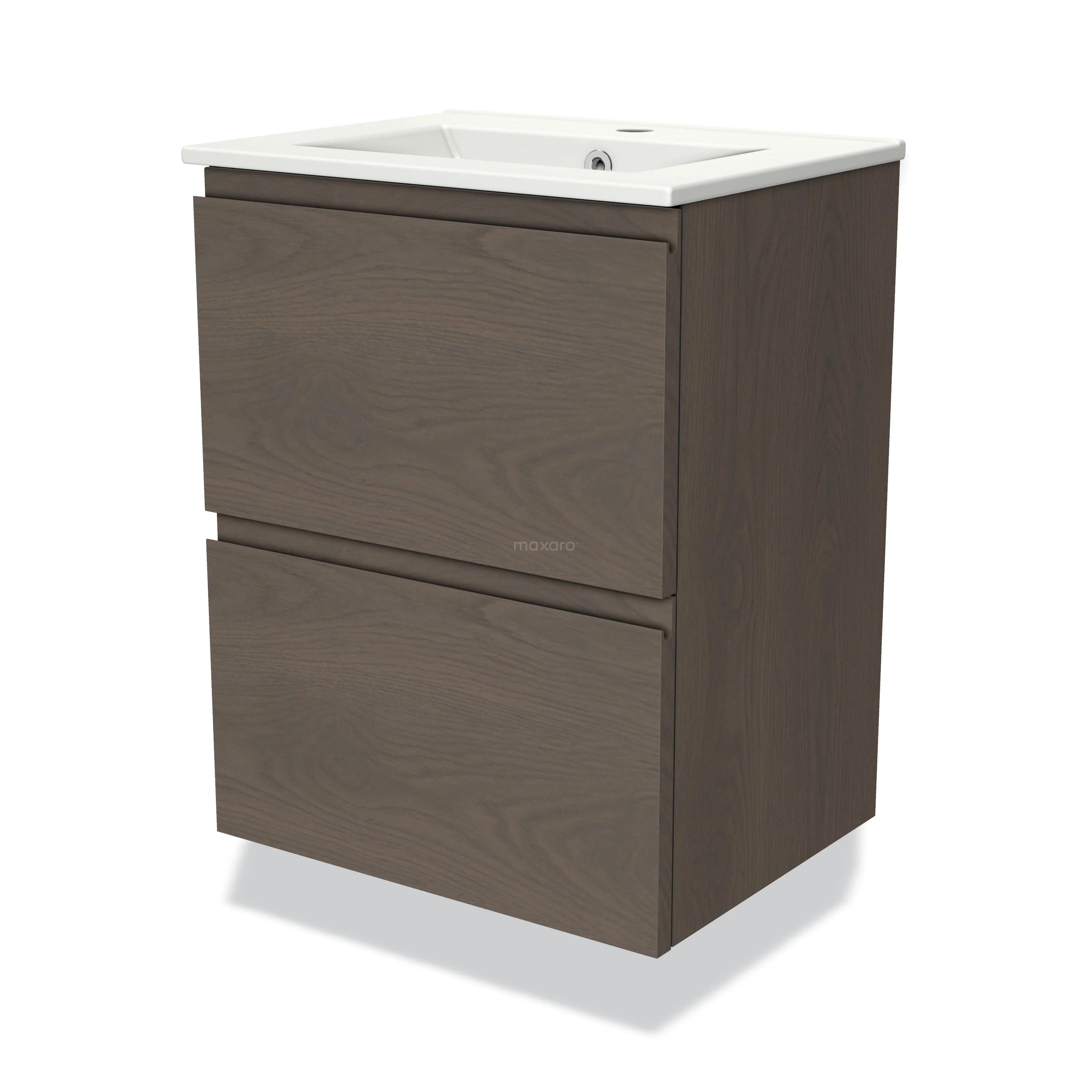 Modulo Slim Waschtische | 50 cm Dunkelbraune Eiche Grifflos front Keramik 2 übereinanderliegende Schubladen