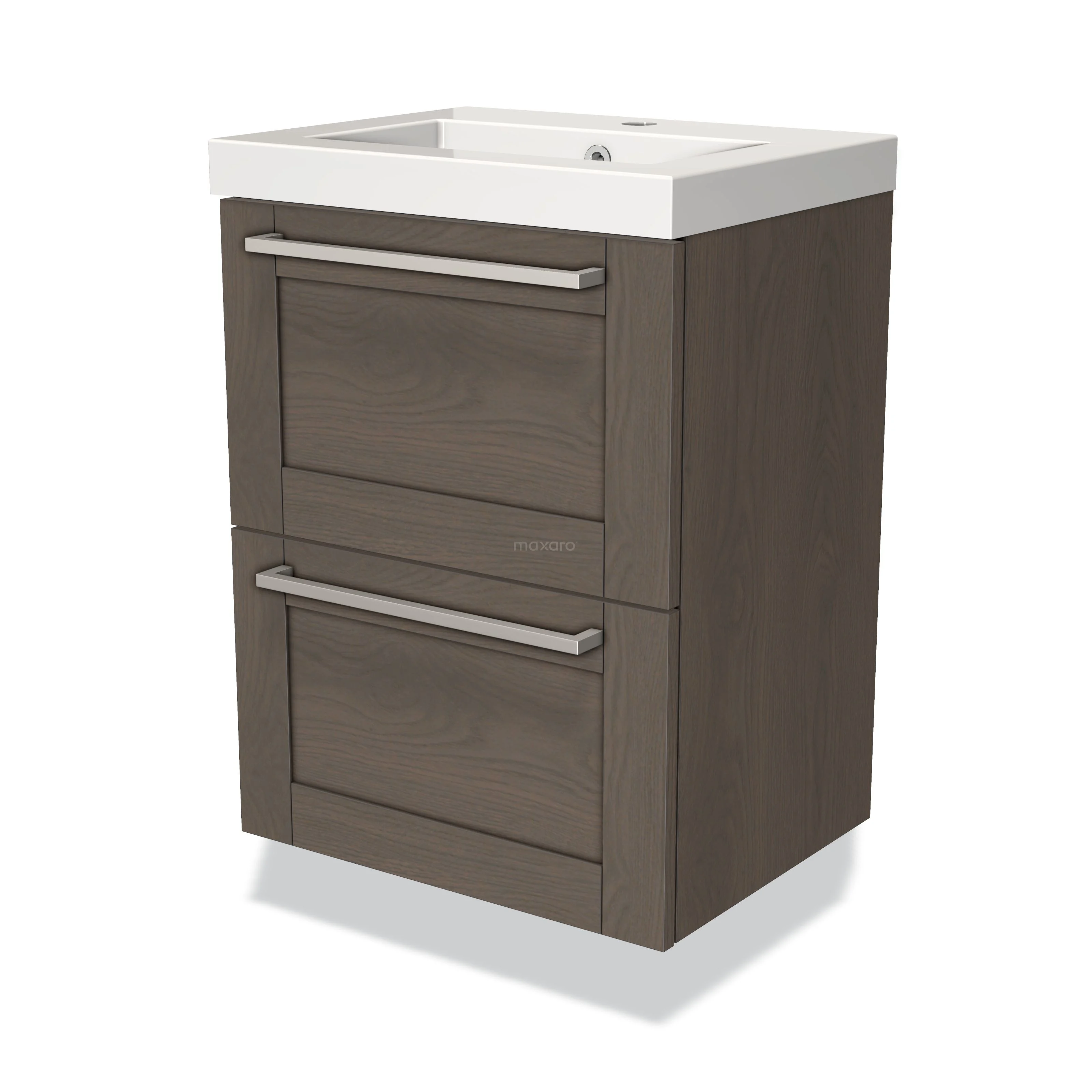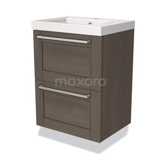 Modulo Slim Waschtische | 50 cm Dunkelbraune Eiche Rahmen front Mineralguss 2 übereinanderliegende Schubladen