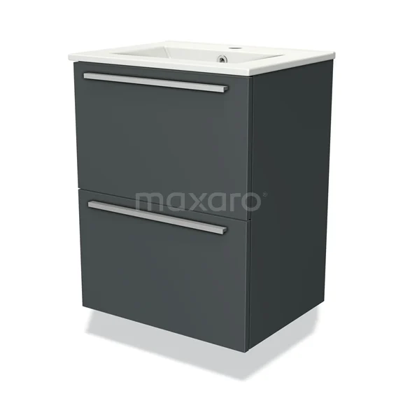 Modulo Slim Waschtische | 50 cm Dunkelgrau Flach front Keramik 2 übereinanderliegende Schubladen