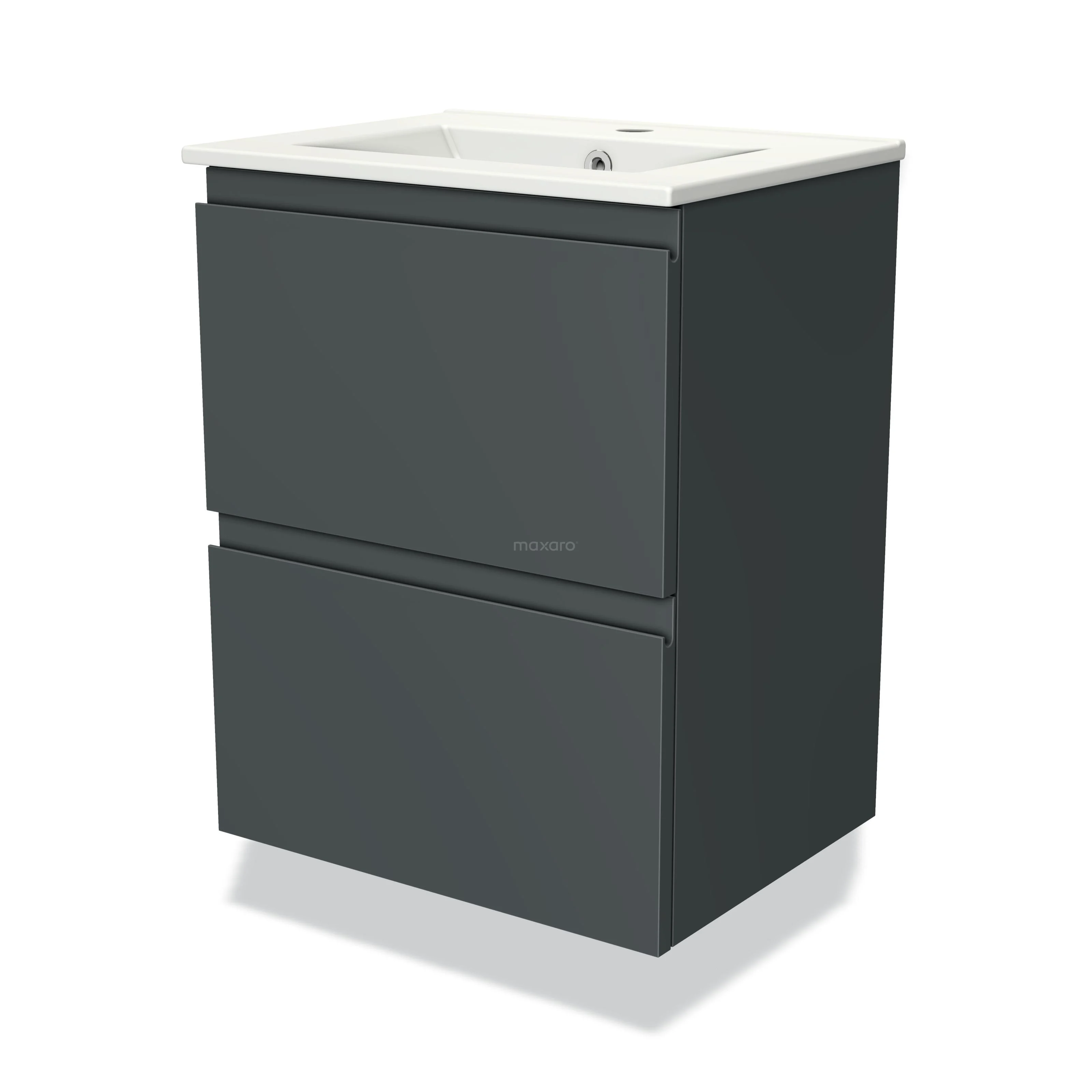 Modulo Slim Waschtische | 50 cm Dunkelgrau Grifflos front Keramik 2 übereinanderliegende Schubladen