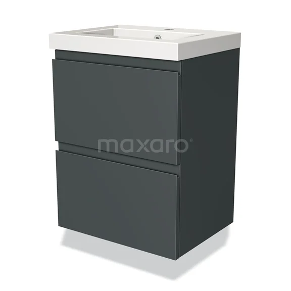 Modulo Slim Waschtische | 50 cm Dunkelgrau Grifflos front Mineralguss 2 übereinanderliegende Schubladen