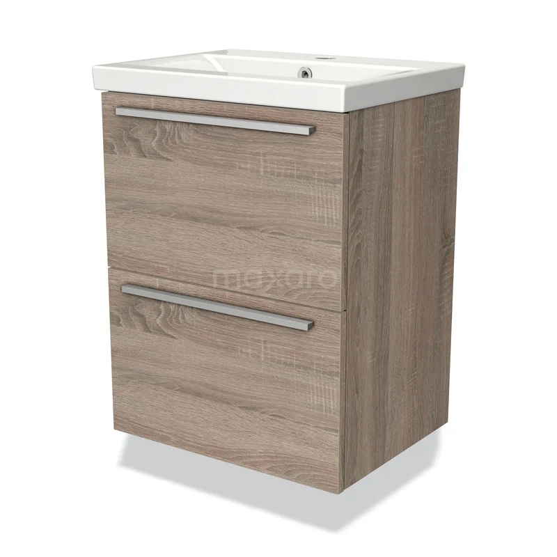 Modulo Slim Waschtische | 50 cm Eiche Flach front Keramik 2 übereinanderliegende Schubladen