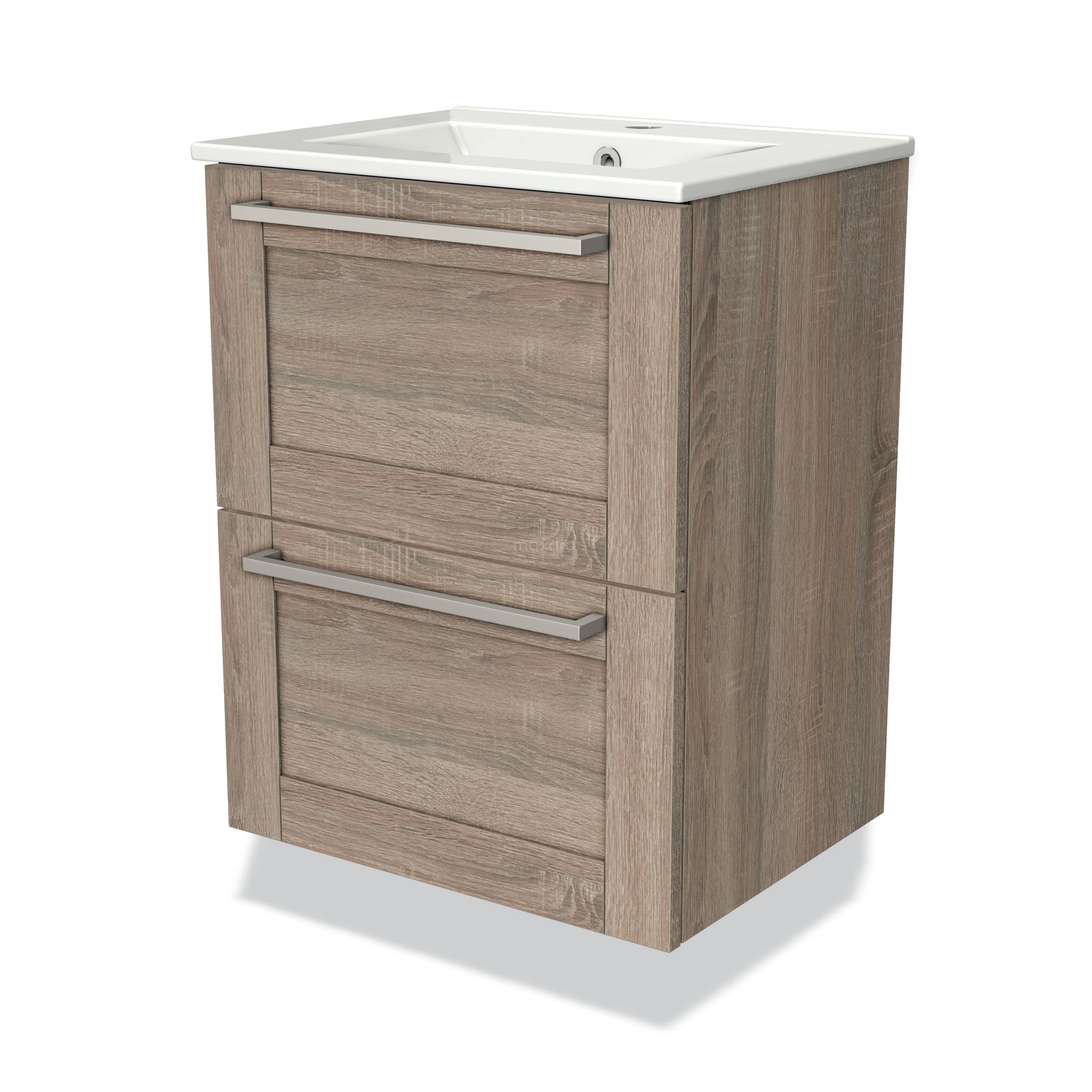Modulo Slim Waschtische | 50 cm Eiche Rahmen front Keramik 2 übereinanderliegende Schubladen