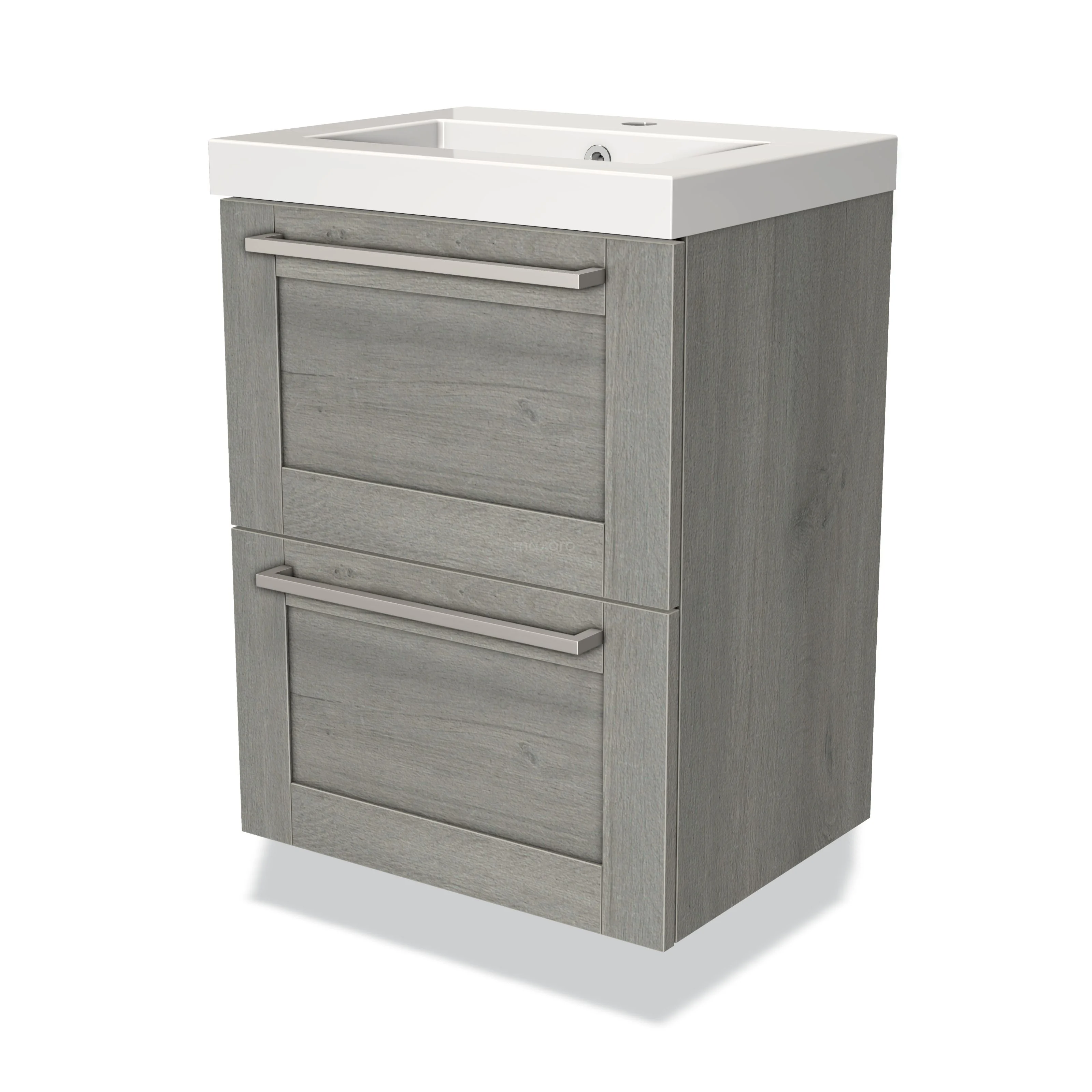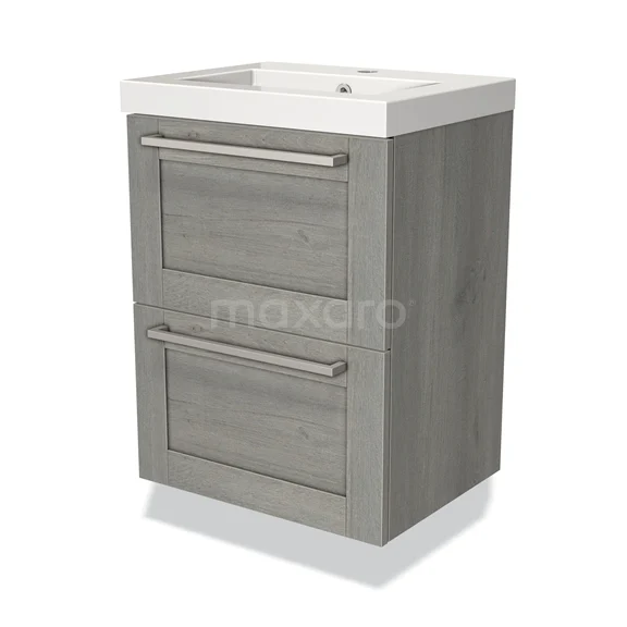 Modulo Slim Waschtische | 50 cm Graue Eiche Rahmen front Mineralguss 2 übereinanderliegende Schubladen