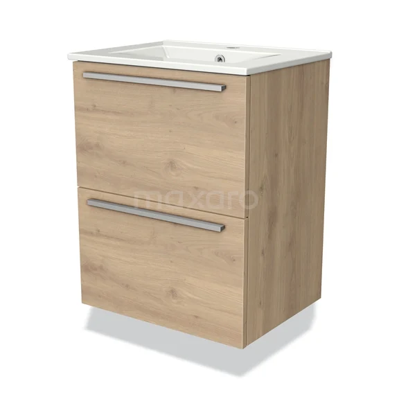 Modulo Slim Waschtische | 50 cm Hellbraune Eiche Flach front Keramik 2 übereinanderliegende Schubladen