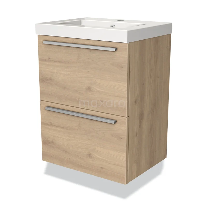 Modulo Slim Waschtische | 50 cm Hellbraune Eiche Flach front Mineralguss 2 übereinanderliegende Schubladen