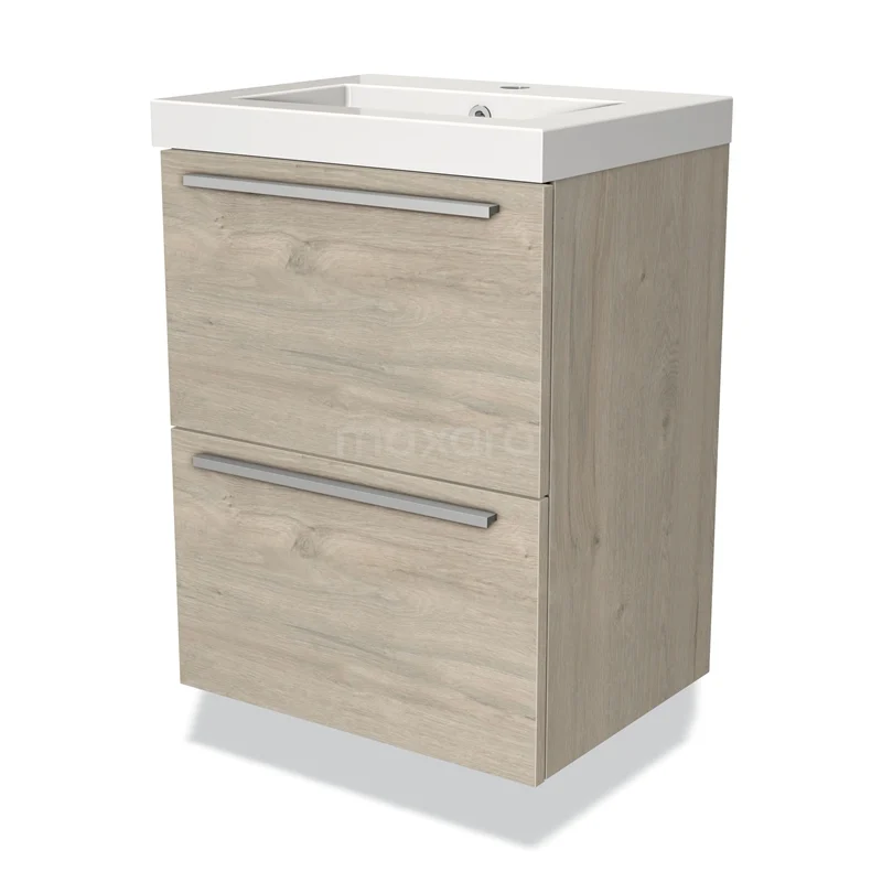 Modulo Slim Waschtische | 50 cm Hellgraue Eiche Flach front Mineralguss 2 übereinanderliegende Schubladen