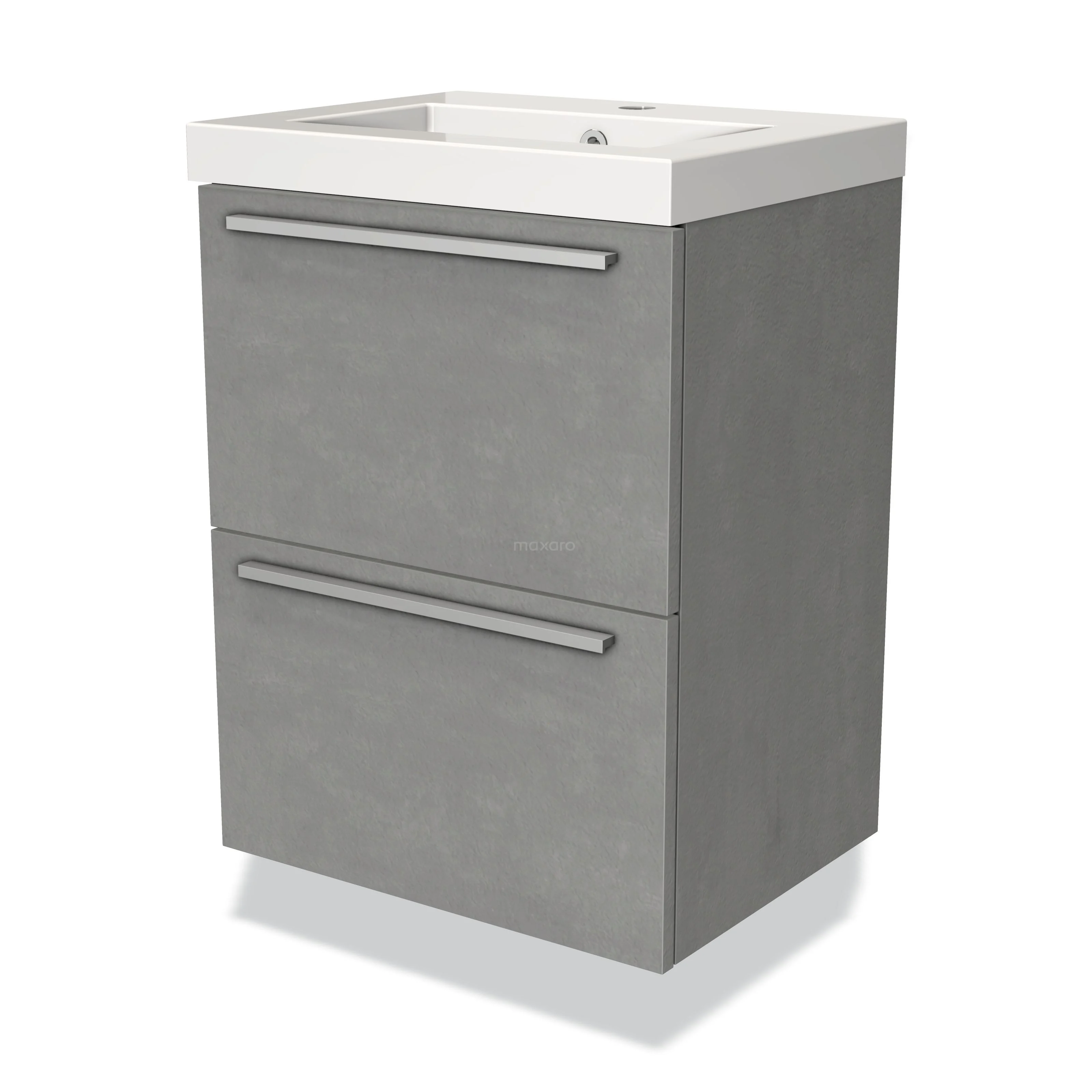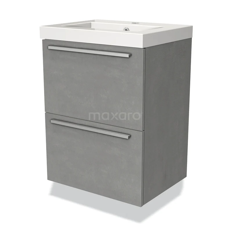 Modulo Slim Waschtische | 50 cm Hellgrauer Beton Flach front Mineralguss 2 übereinanderliegende Schubladen