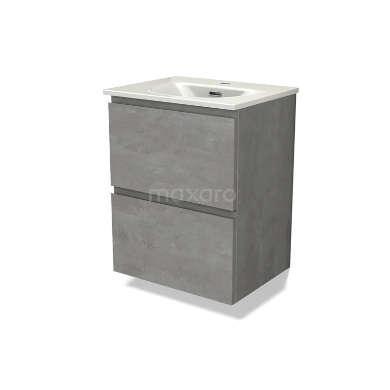 Modulo Slim Waschtische | 50 cm Hellgrauer Beton Grifflos front Keramik 2 übereinanderliegende Schubladen