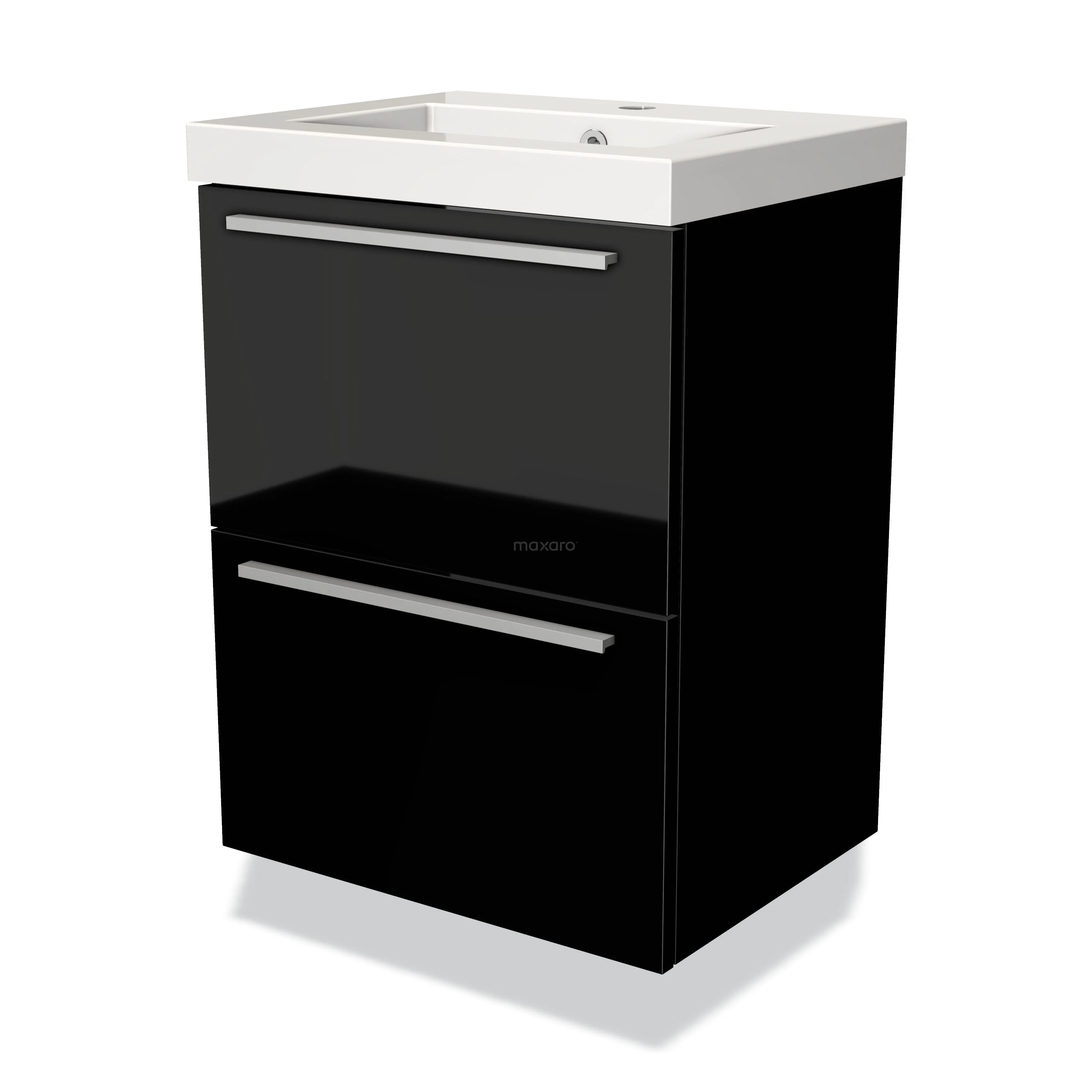 Modulo Slim Waschtische | 50 cm Hochglanz Schwarz Flach front Mineralguss 2 übereinanderliegende Schubladen
